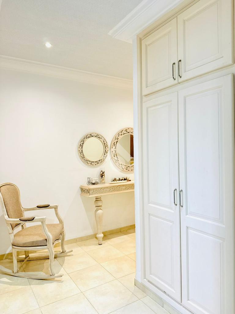 La villa se compose de trois spacieux salons lumineux, de quatre chambres confortables avec dressings et balcons, ainsi que d’une suite parentale avec dressing, salle de bain privative et balcon. La cuisine, grande et fonctionnelle, donne accès à une vaste terrasse idéale pour les moments de détente. Une salle de bain supplémentaire complète l’espace de vie. À l’extérieur, un jardin entoure toute la villa, profitant d’une excellente orientation Est, garantissant un ensoleillement optimal, avec en plus un emplacement en coin et un parking pouvant accueillir 2 à 3 voitures.