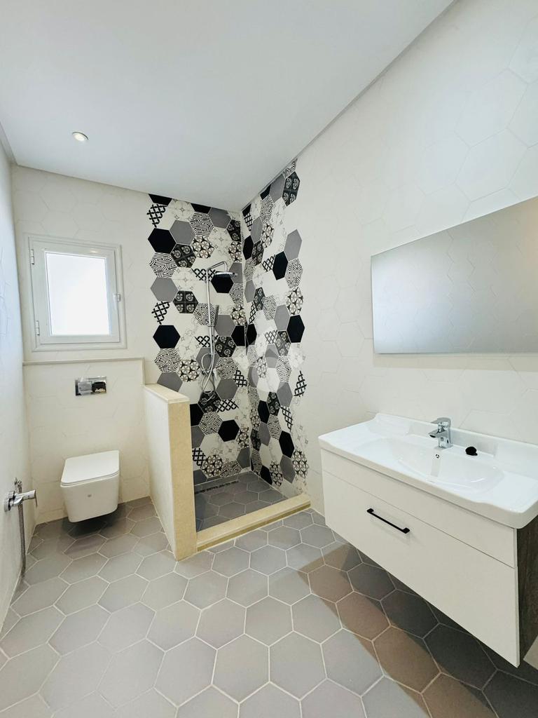 Chaque étage est aménagé en S+3 et comprend un salon lumineux, une cuisine indépendante ainsi que trois chambres à coucher, toutes des suites parentales dotées de salles d’eau privatives, avec des points d’eau présents à chaque niveau.
